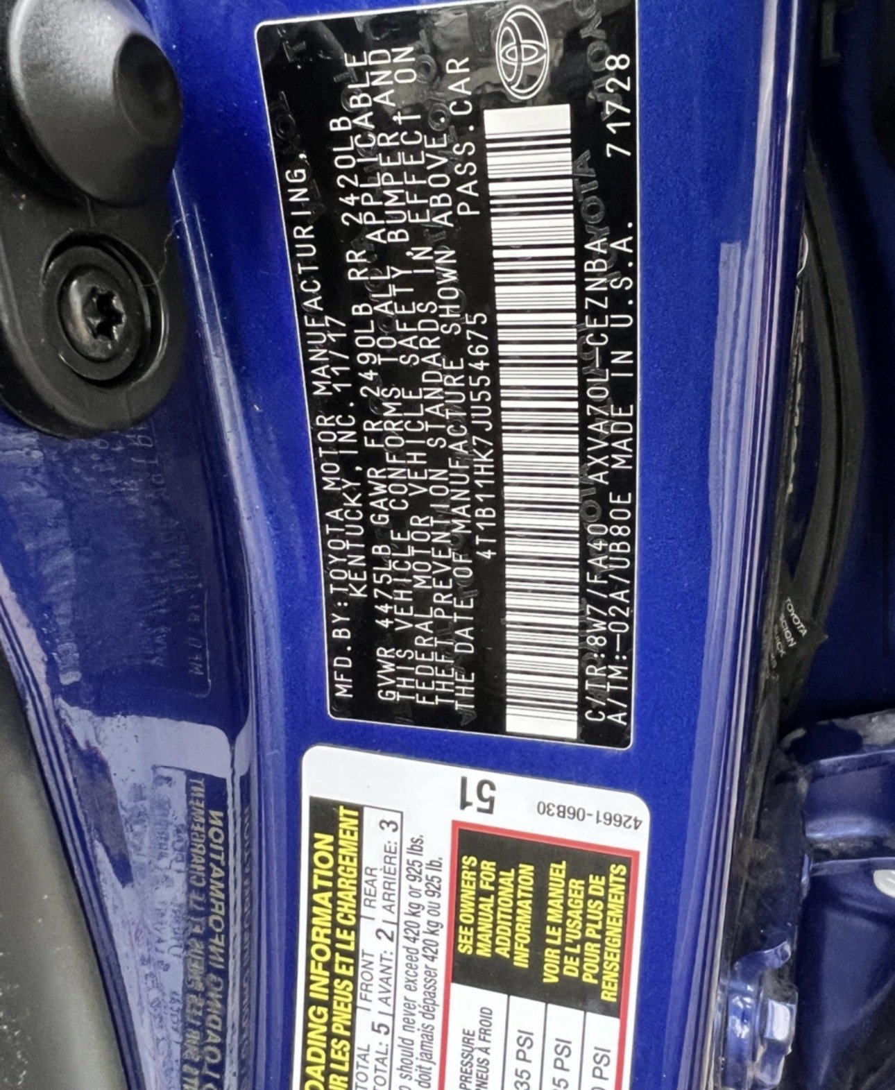 Toyota Camry (COMIS) , 2017 г.