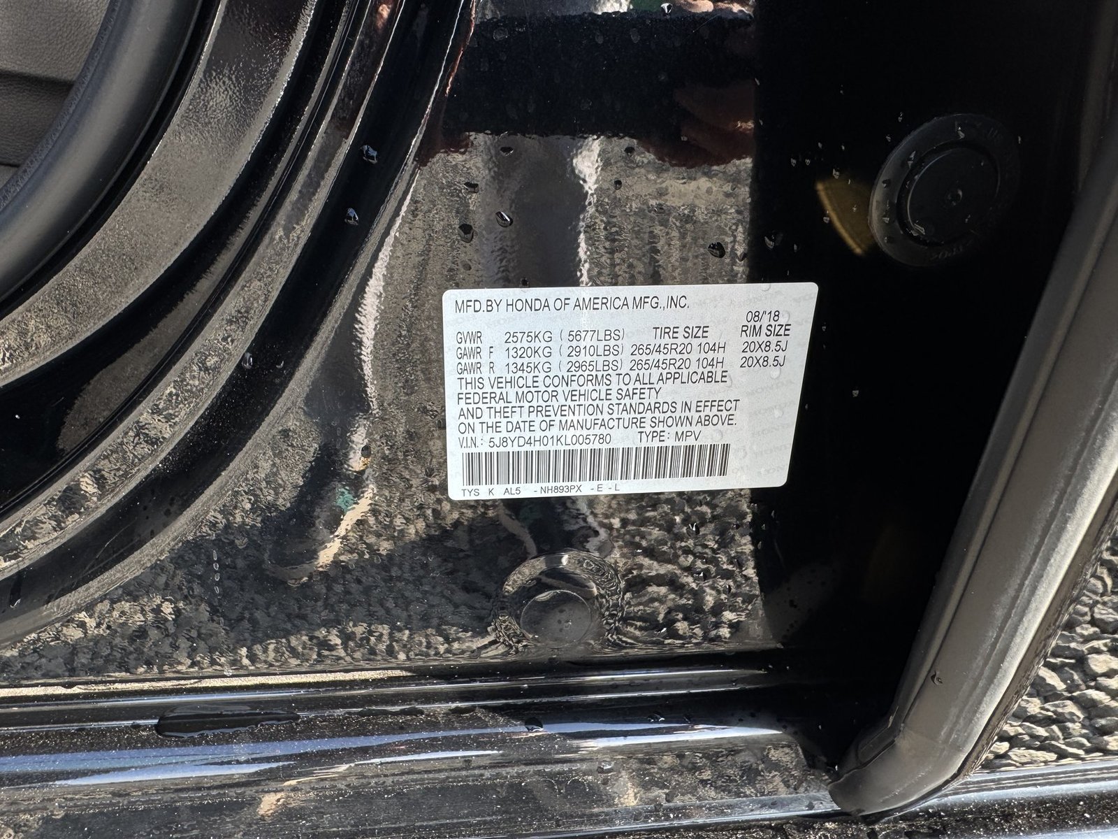 VIN: 5J8YD4H01KL005780