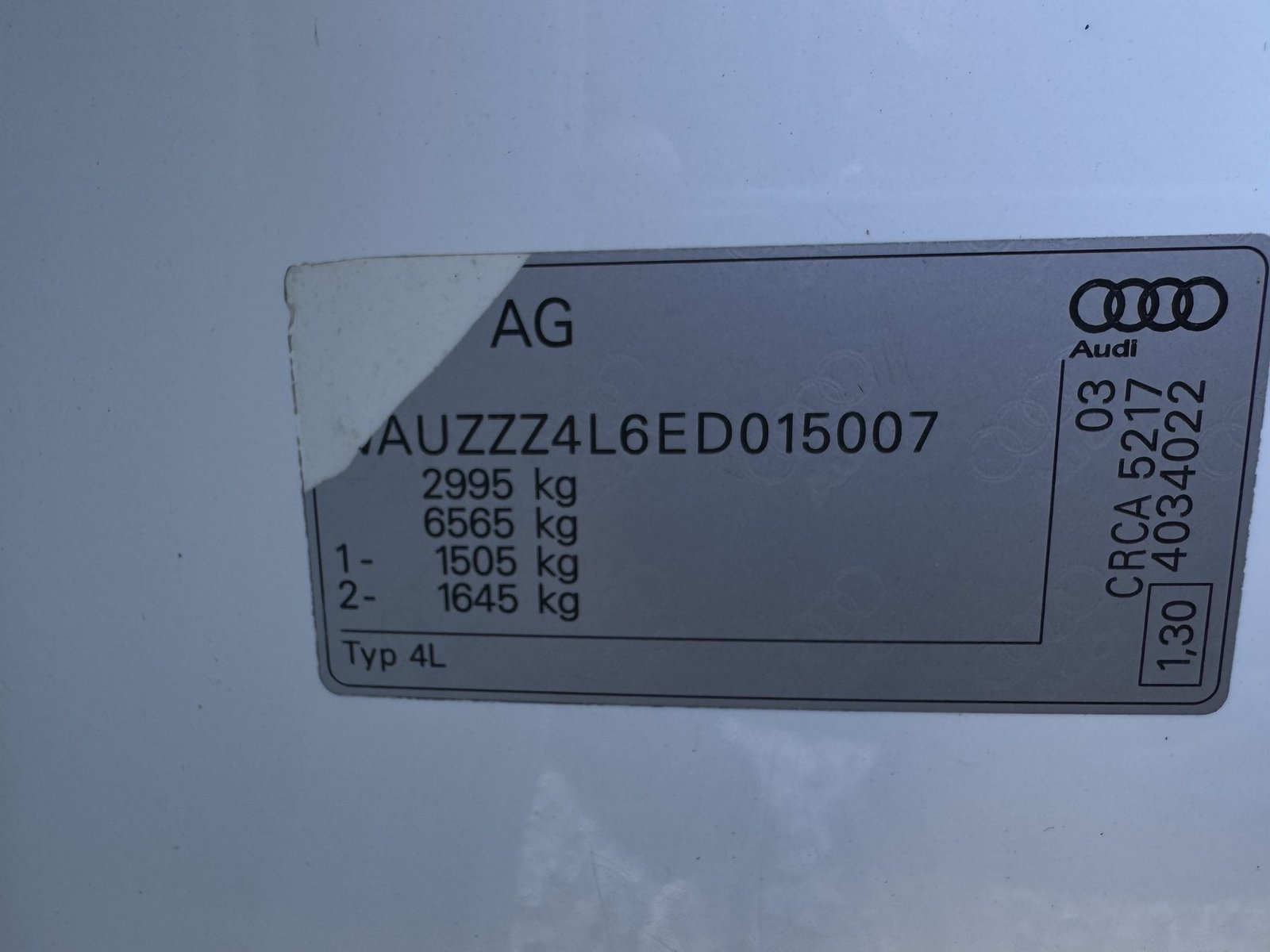 VIN:WAUZZZ4L6ED015007