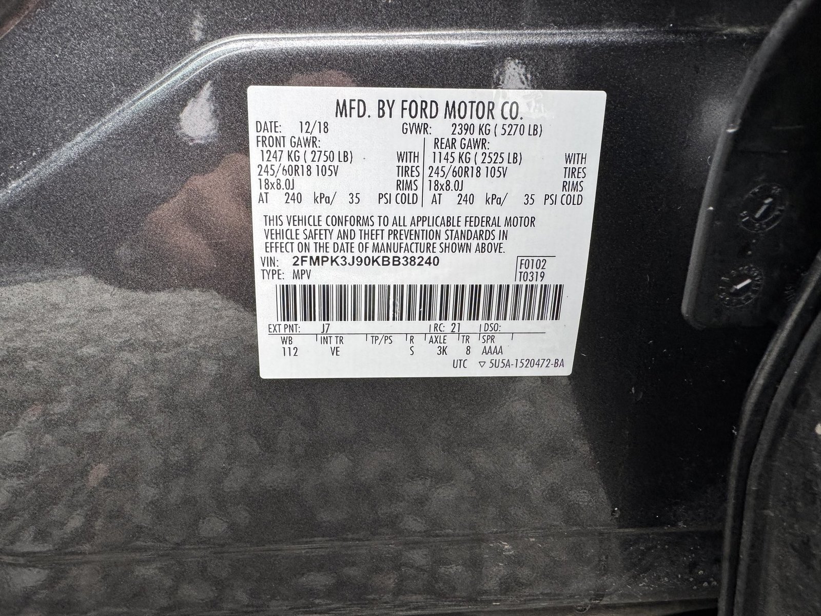 VIN:2FMPK3J90KBB38240